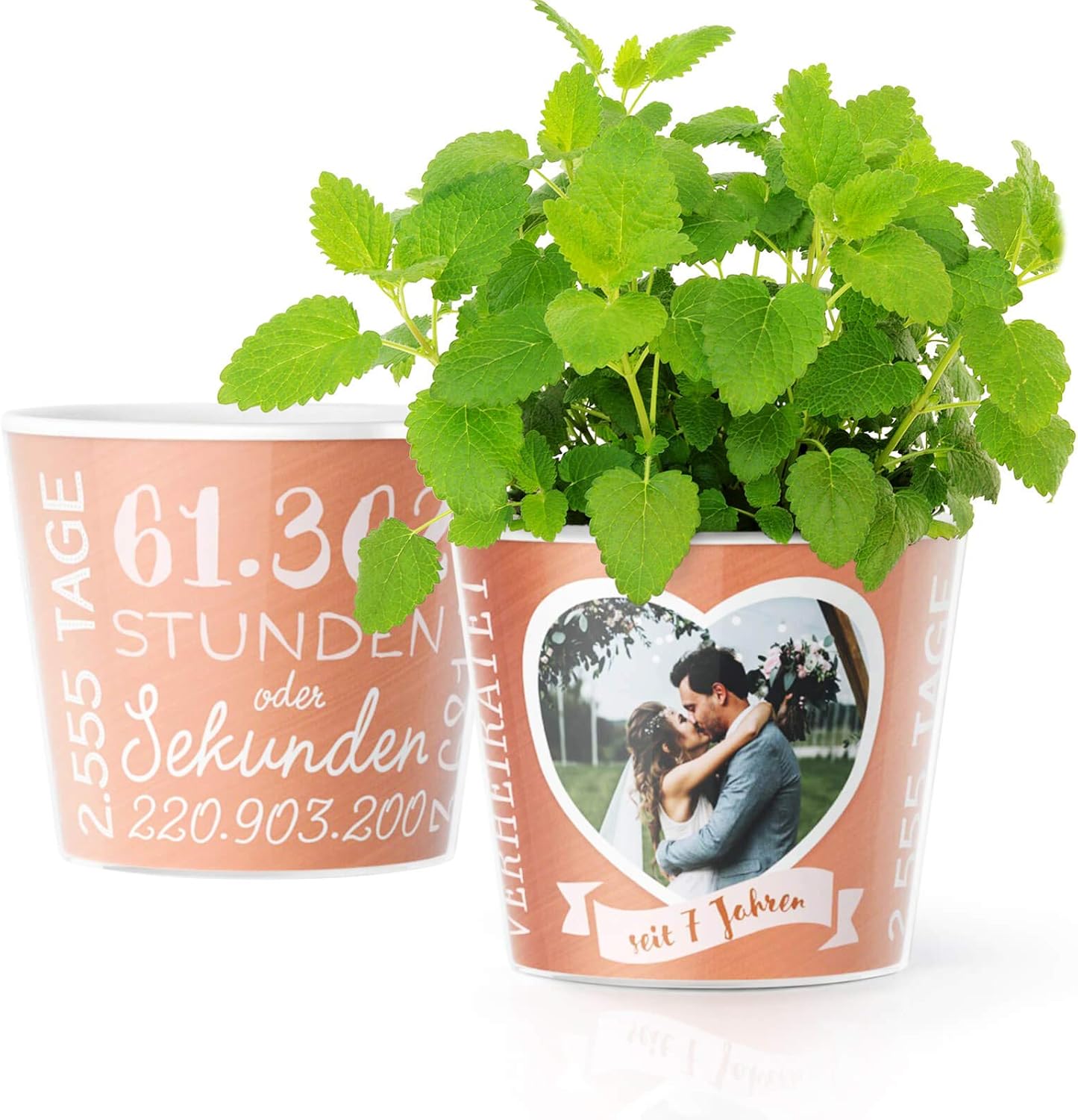 7 Hochzeitstag Geschenk Blumentopf O16cm Geschenkidee Zur Kupferhochzeit Fur Mann Oder Frau Mit Herz Bilderrahmen Fur 1 Foto 10x15cm Glucklich Verheiratet 7 Jahre Amazon De Kuche Haushalt